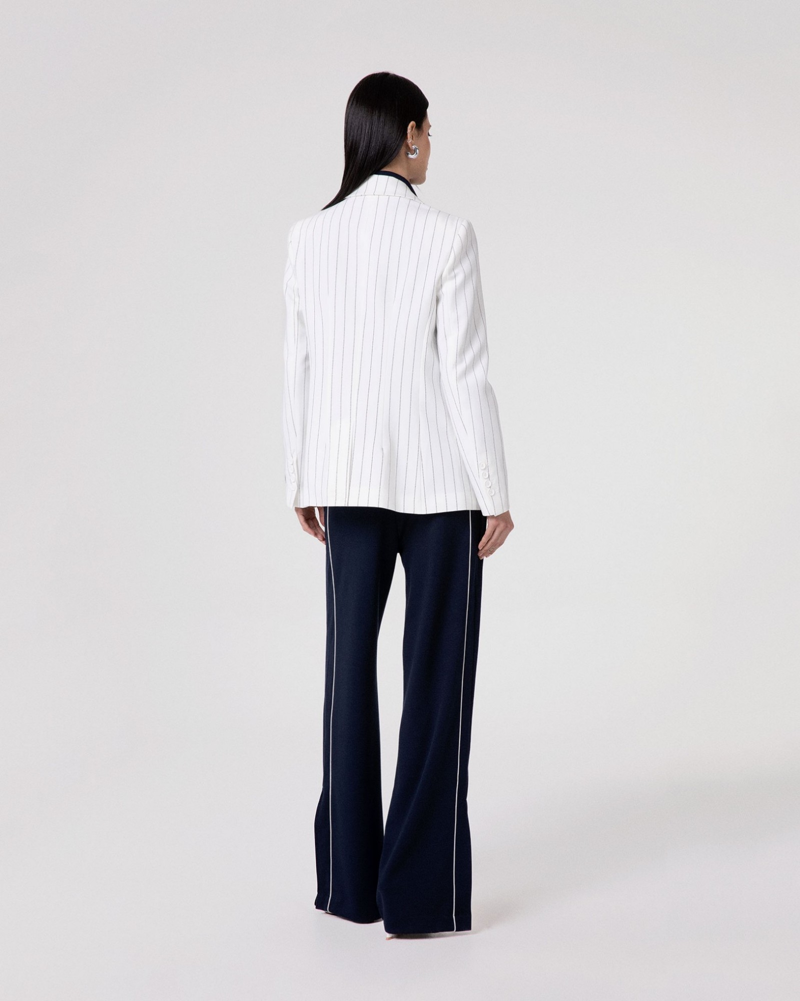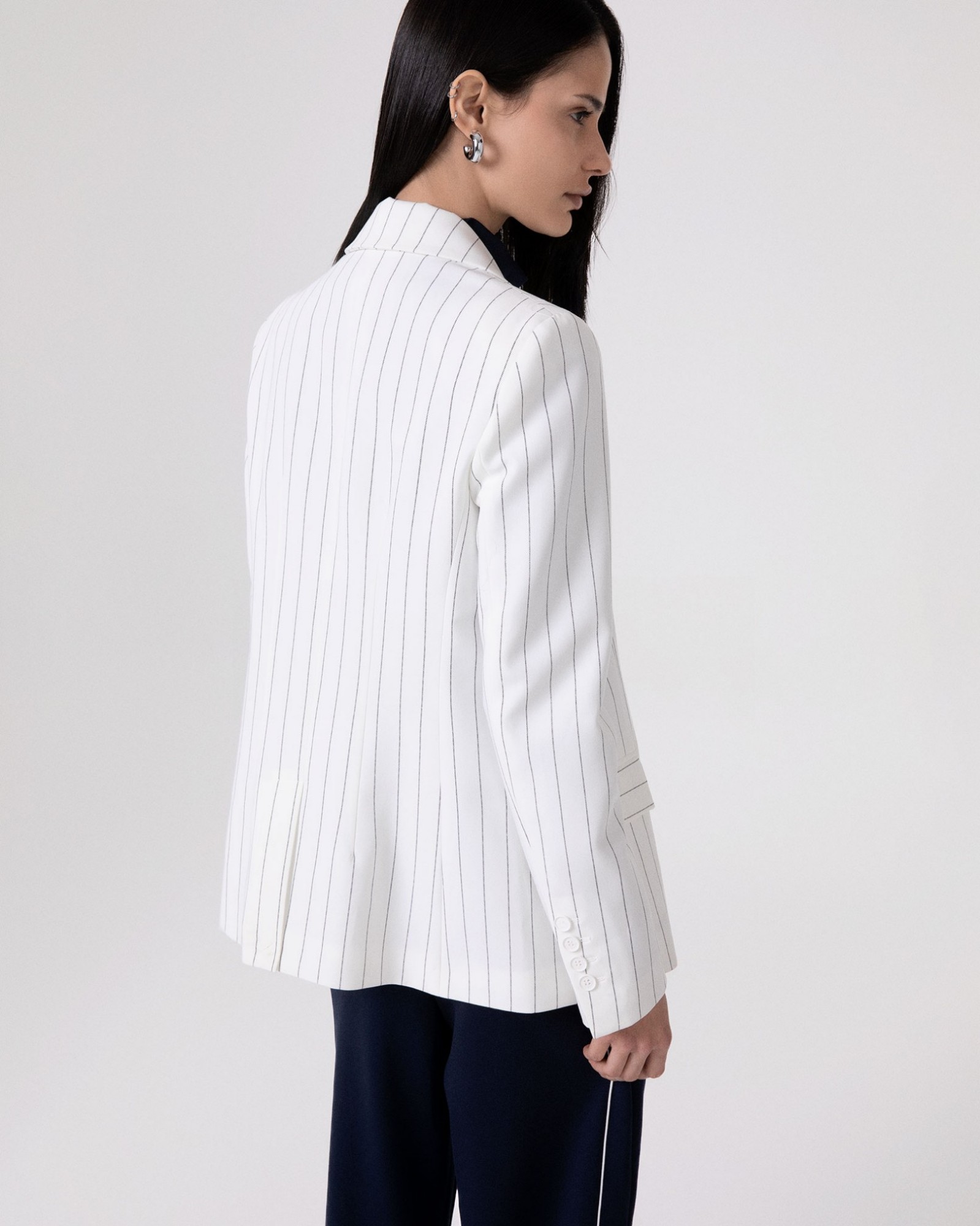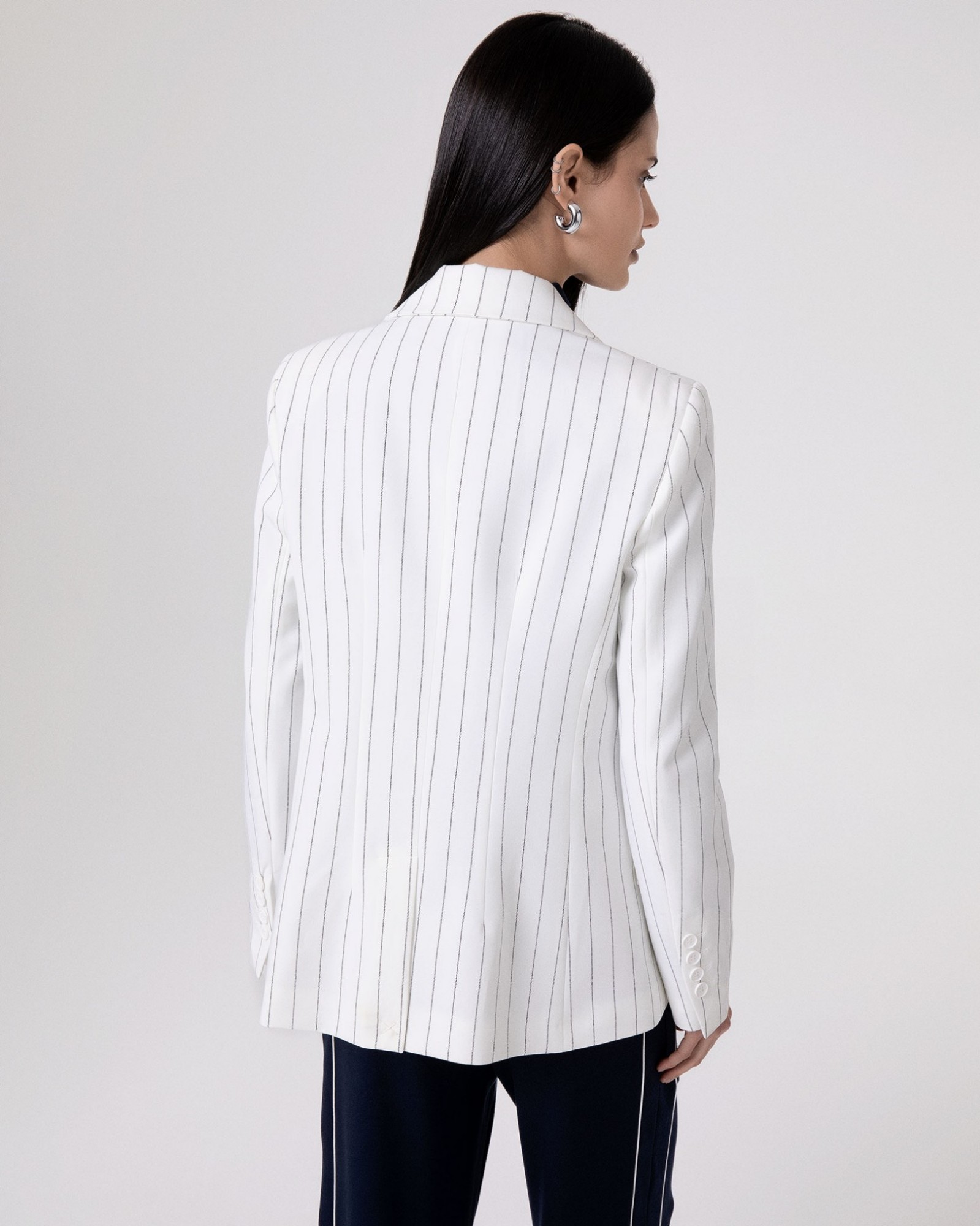 Double-breasted pinstriped jacket with shoulder pads