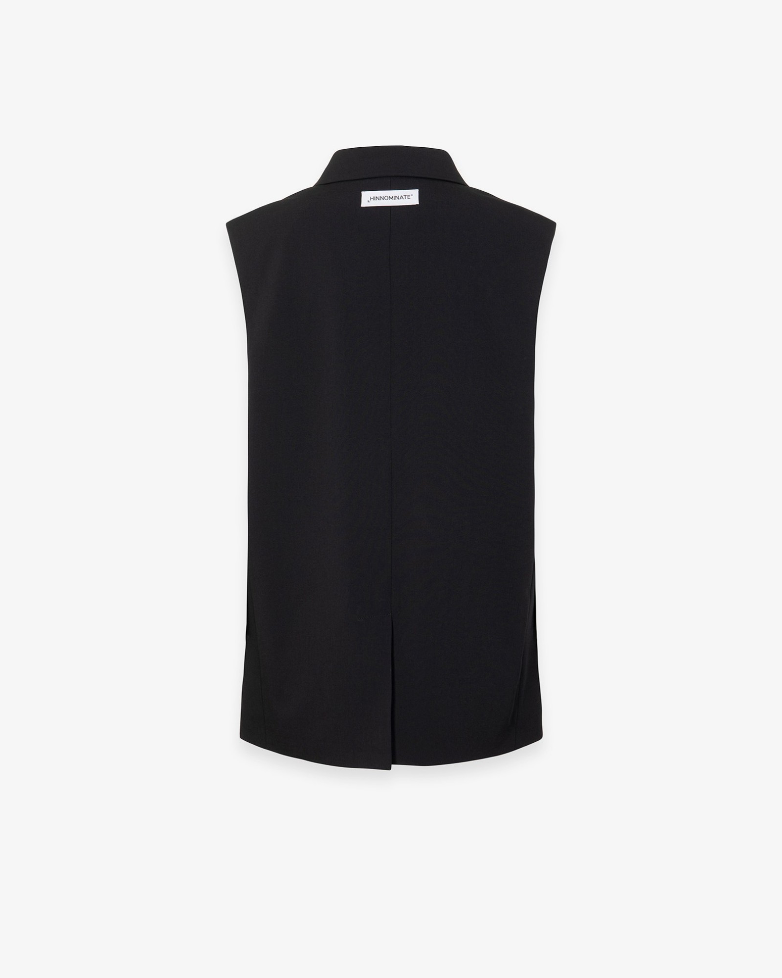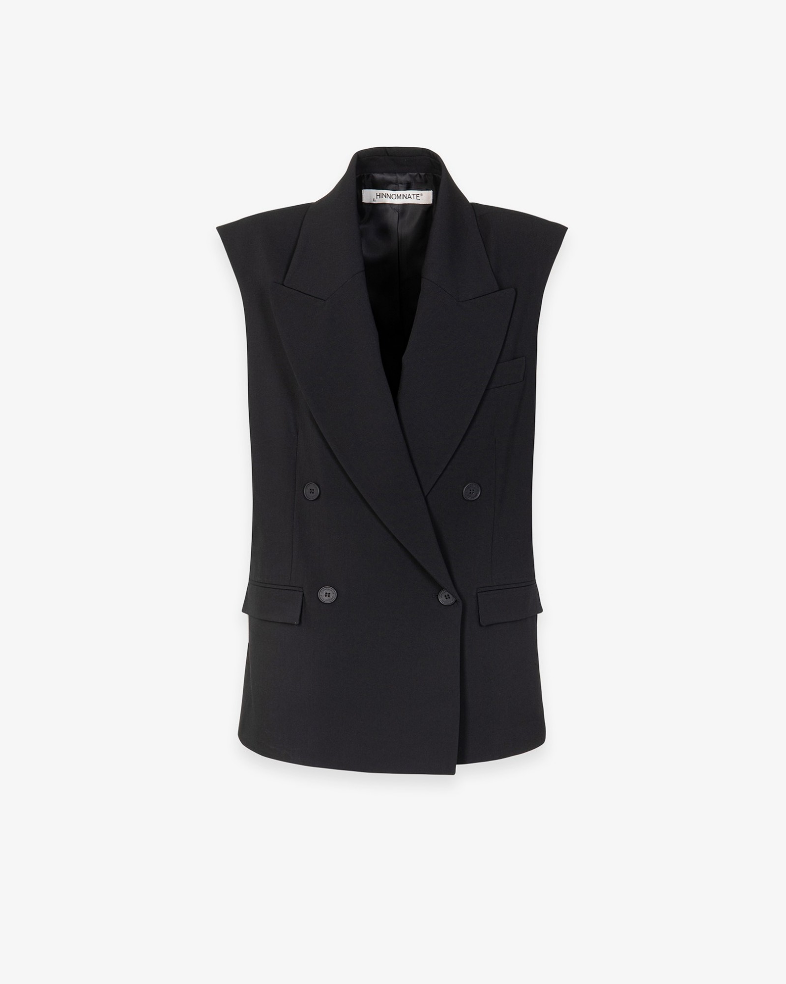 Double-breasted sleeveless jacket with raw cut