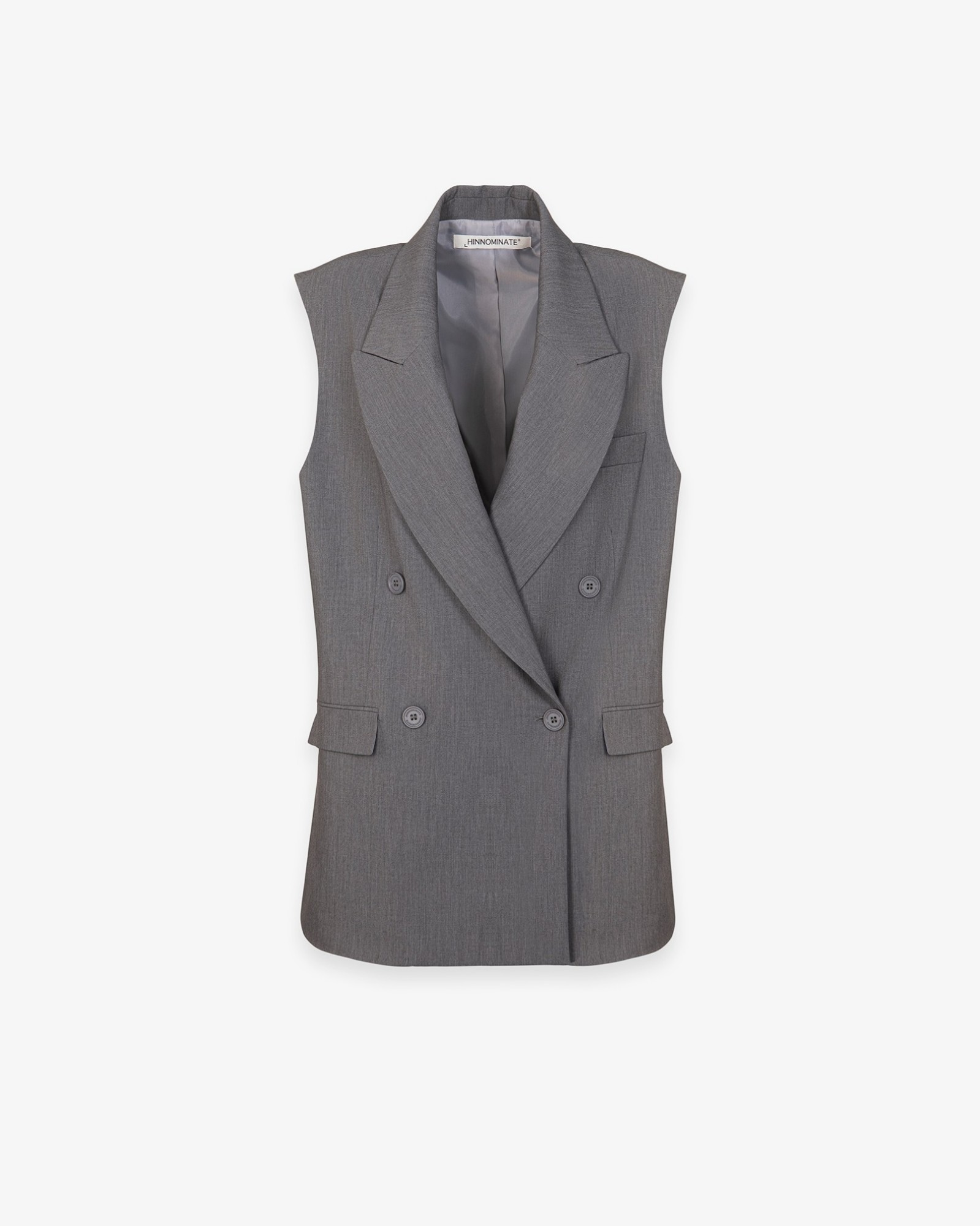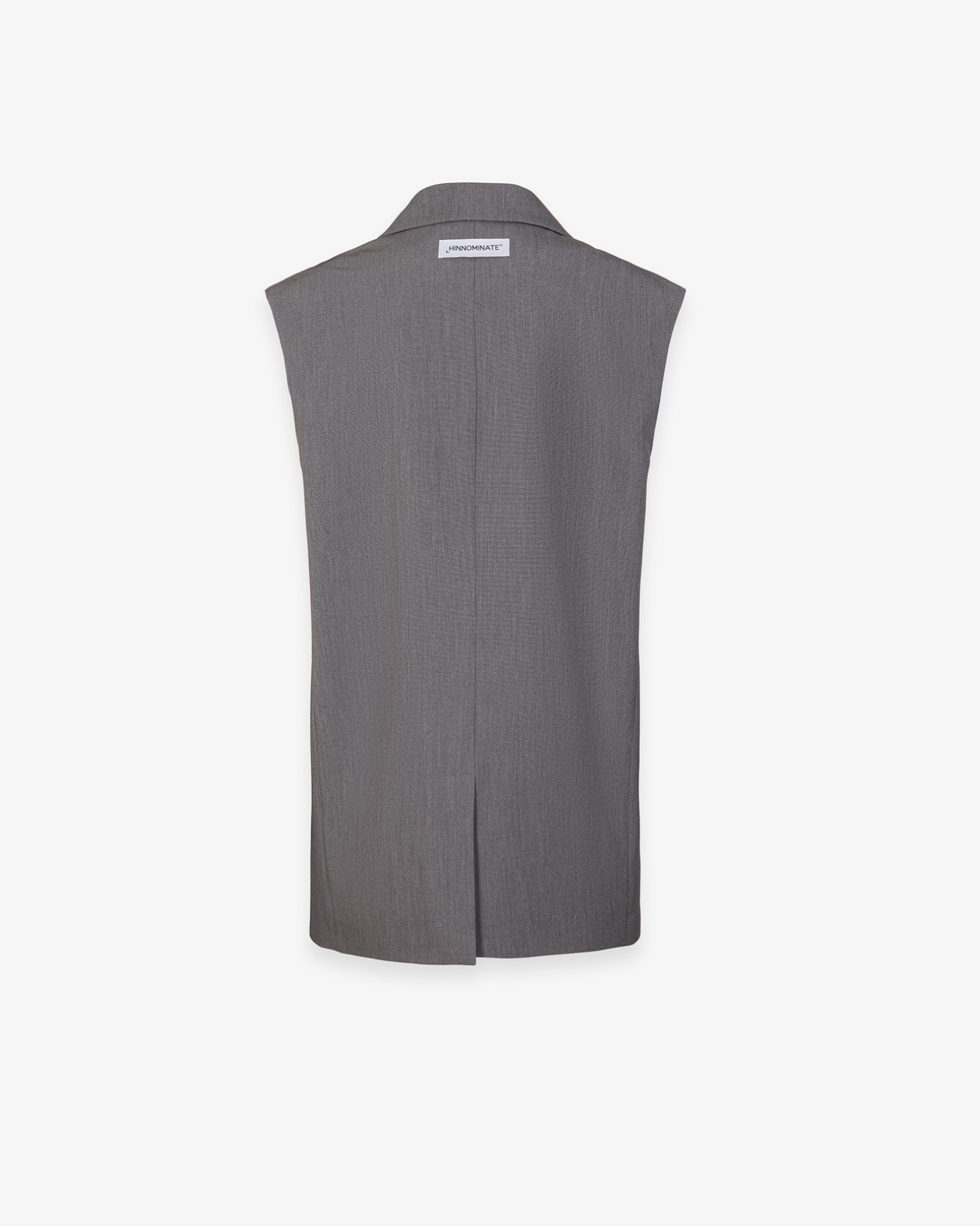 Double-breasted sleeveless jacket with raw cut