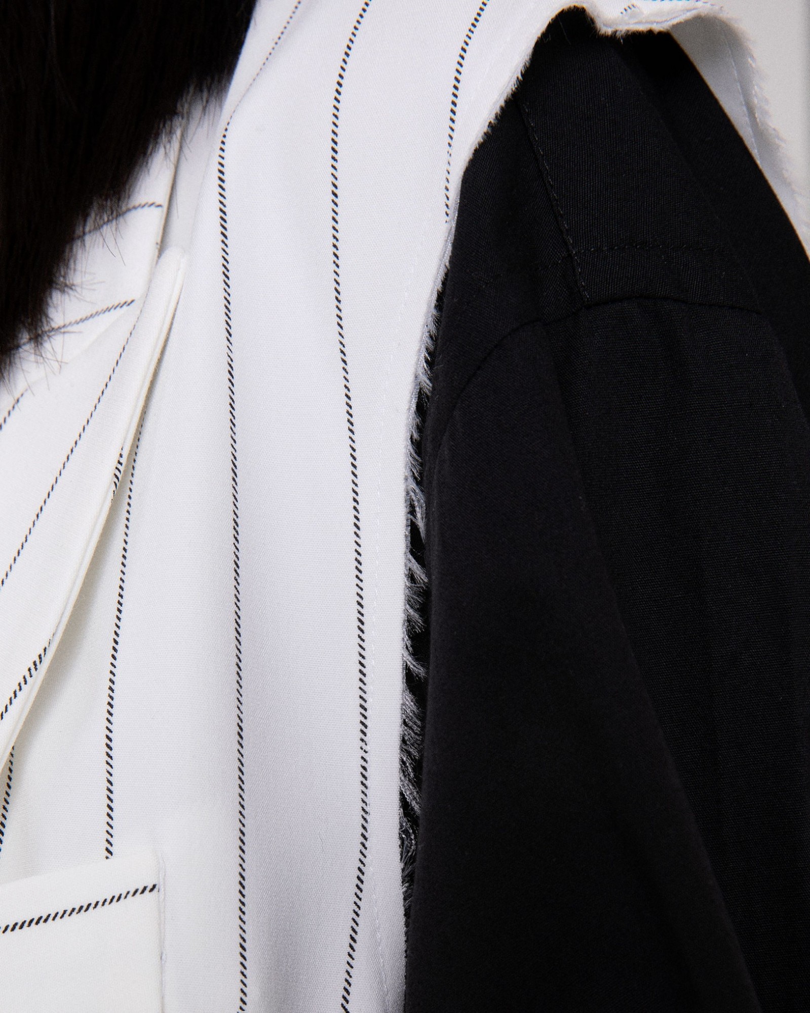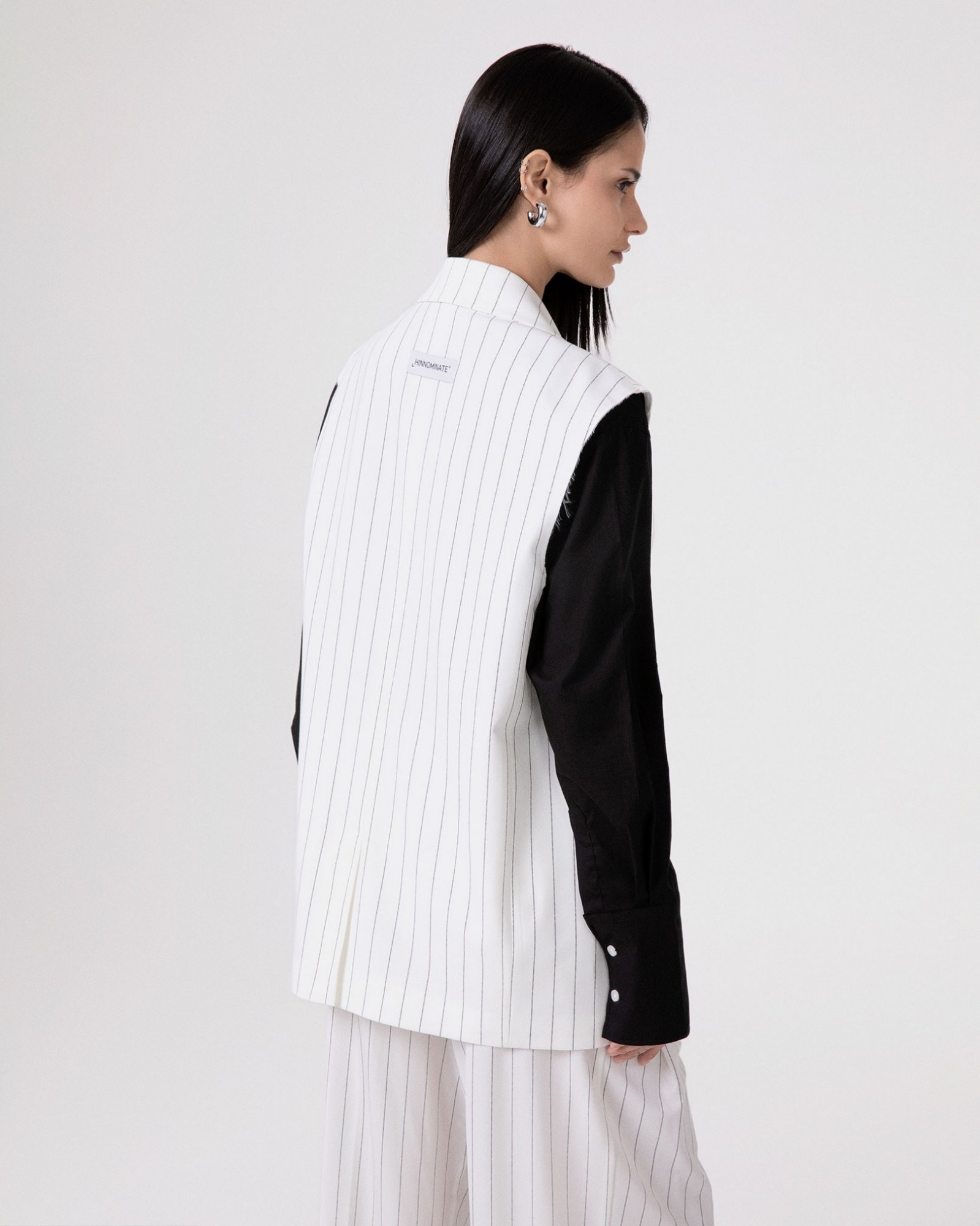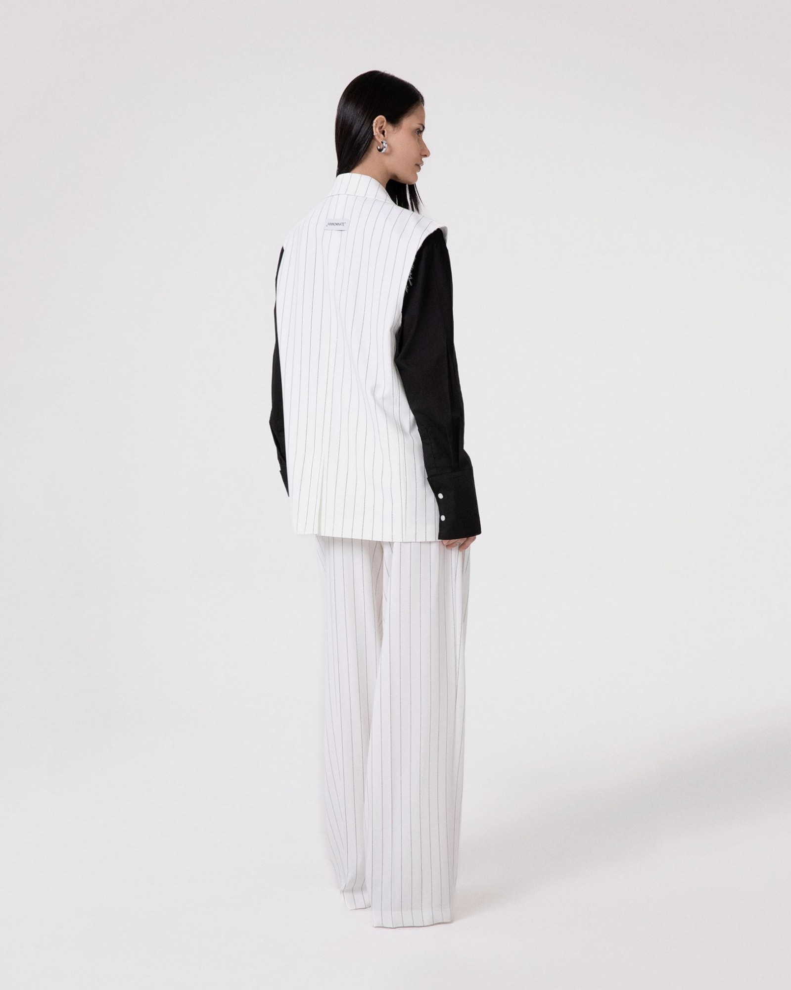 Double-breasted sleeveless pinstriped jacket