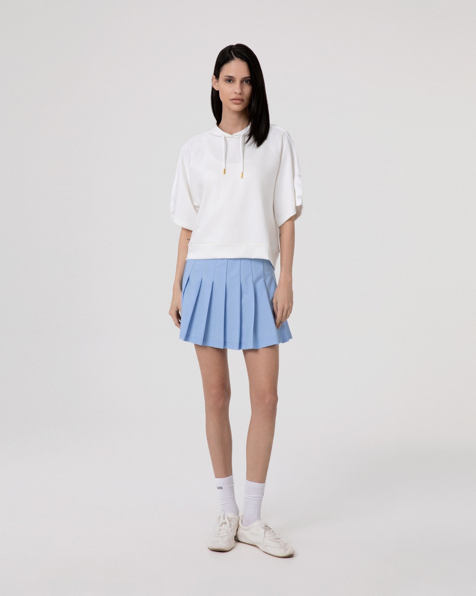 Short Pleated Skirt with Logo Belt