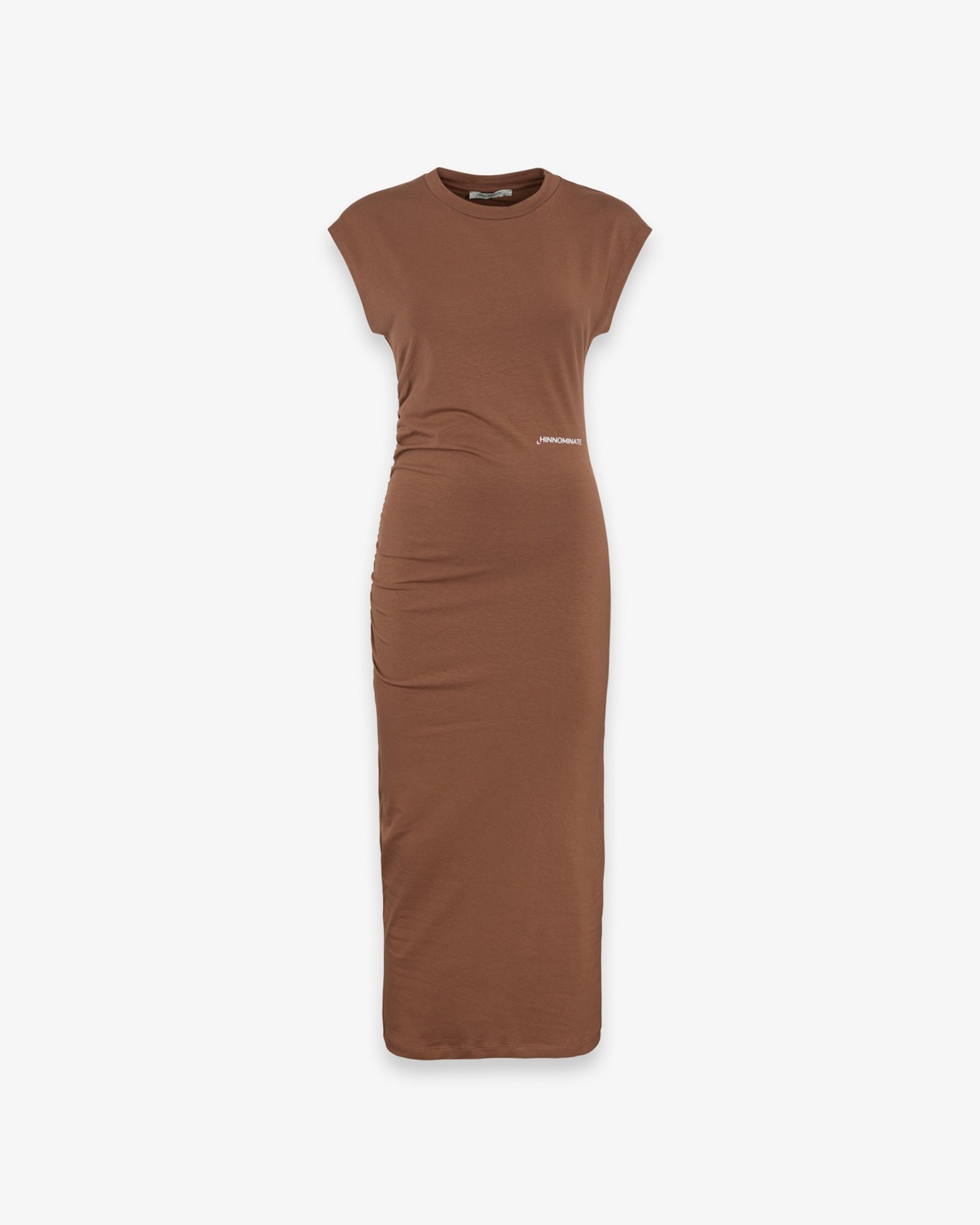 Long dress in two-way stretch with side gathering