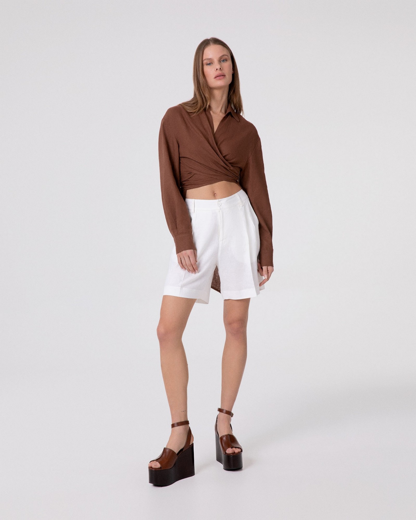 Camicia Corta In Lino Con Nodo Sul Davanti