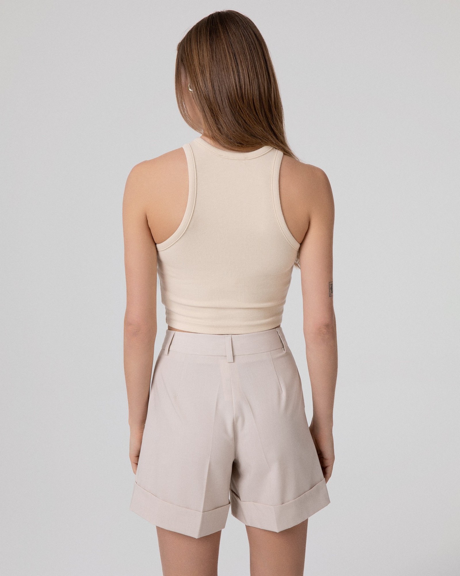Crop Top In Costina Con Scollo All'Americana