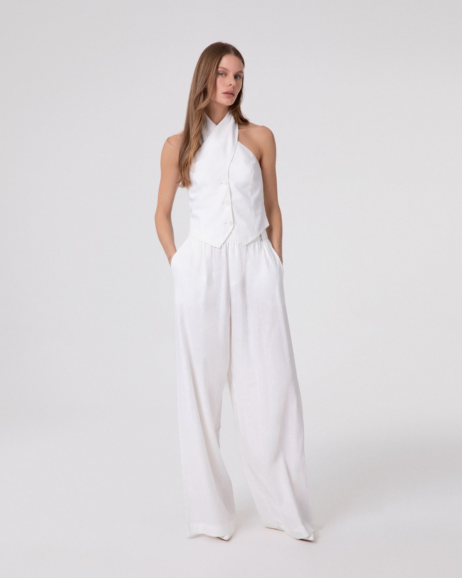 Pantalone Largo Dritto In Lino
